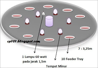 - Pastikan kesiapan perlengkapan area brooder meliputi area pemanas, lampu penerang, serta tempat pakan, tempat minum yang telah terisi. tebar DOC sesegera mungkin pada brooder.